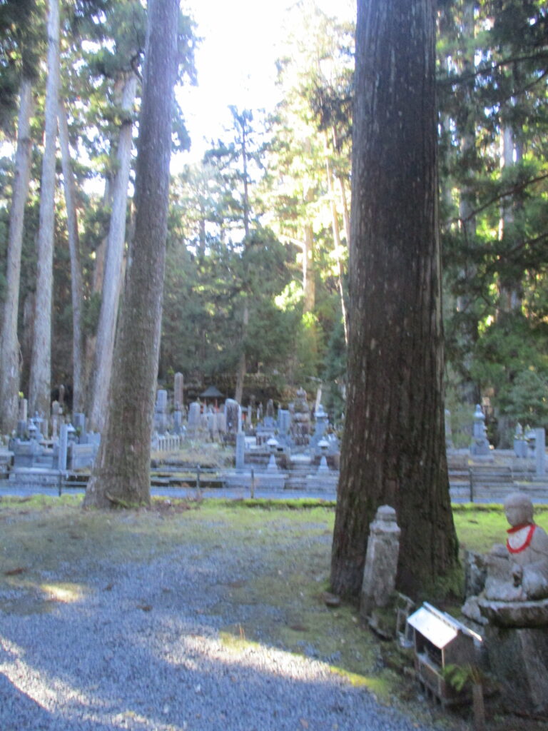 じめとする墓地境内です。鬱蒼とした杉の巨木のなか